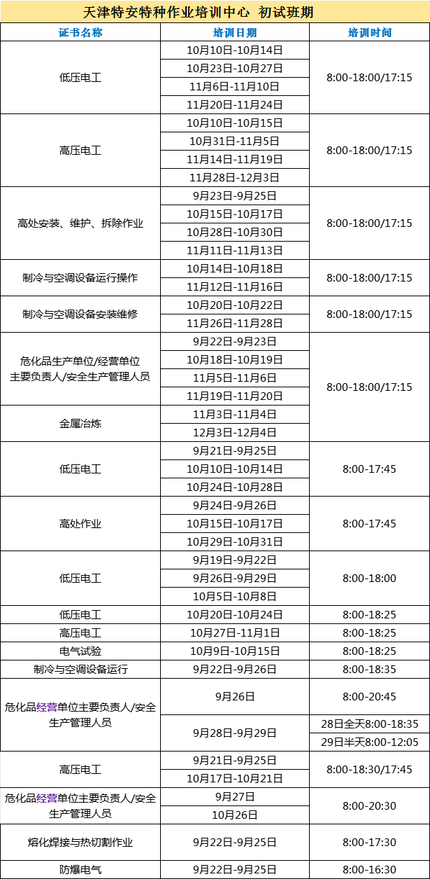 25年9-10月初试复试|高低压电工、防爆电气、电力电缆、制冷安装/运行、高处作业、登高架设、金属冶炼、熔化焊接、危化品开班通知